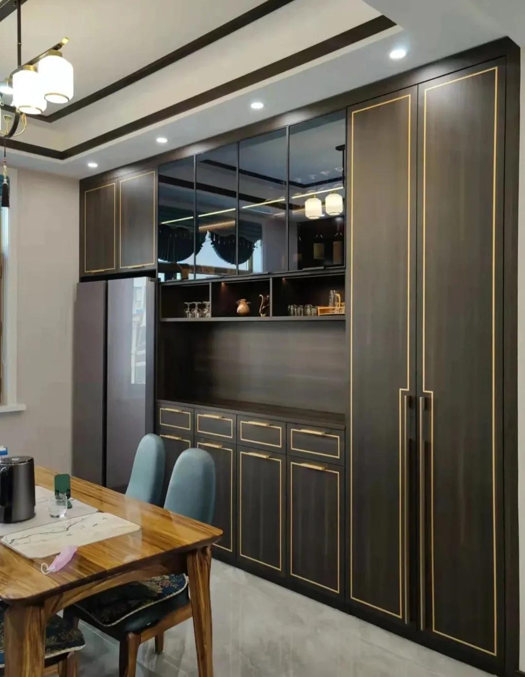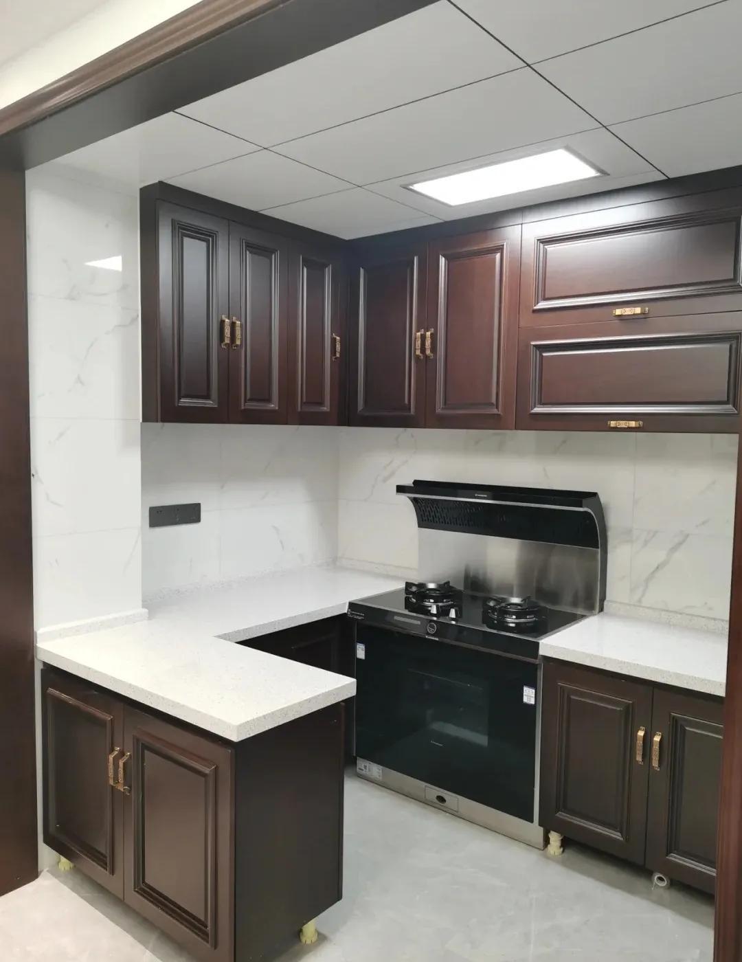 为了使厨房看上去更加的符合新中式风格的设计类型,通常会在橱柜上下功夫。