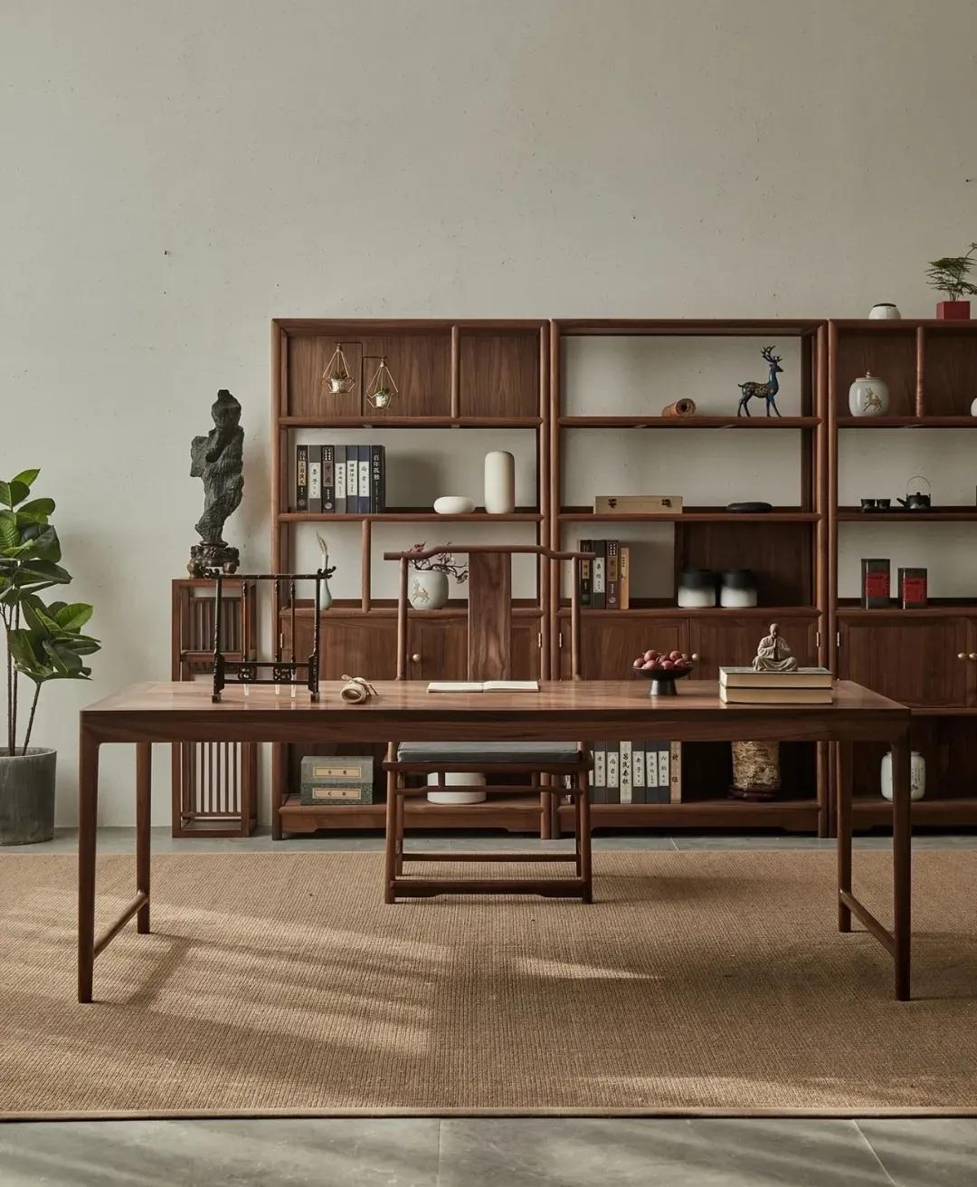 对于新中式风格的装修来说,拥有一个充满诗情画意的书房是一个重要的点睛之笔。