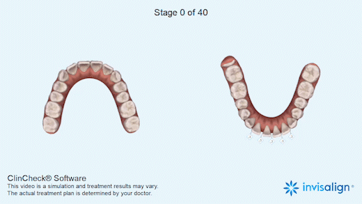 这个案例之所以能入选隐适美全球优秀案例,也是有诸多因素。除了患者要戴好牙套,更重要的是医生的矫正方案,特别这种案例不通过打骨钉的前牙控根性內收,回收门牙时要准确控制好牙齿的移动方向和方式,保证牙根——尤其是牙神经血管出入的根尖始终保持在牙槽骨内侧。