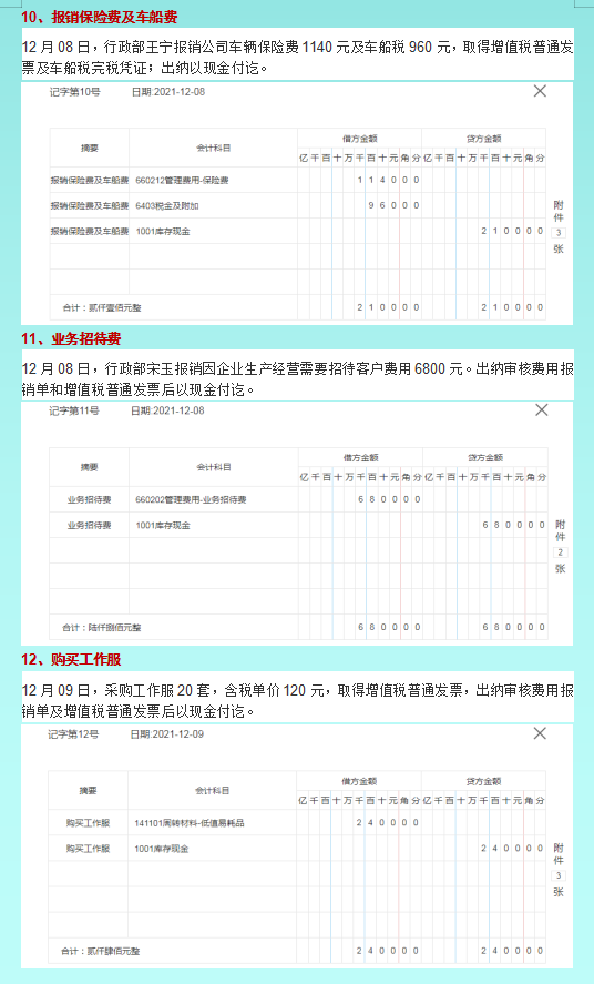 10、报销保险费及车船费