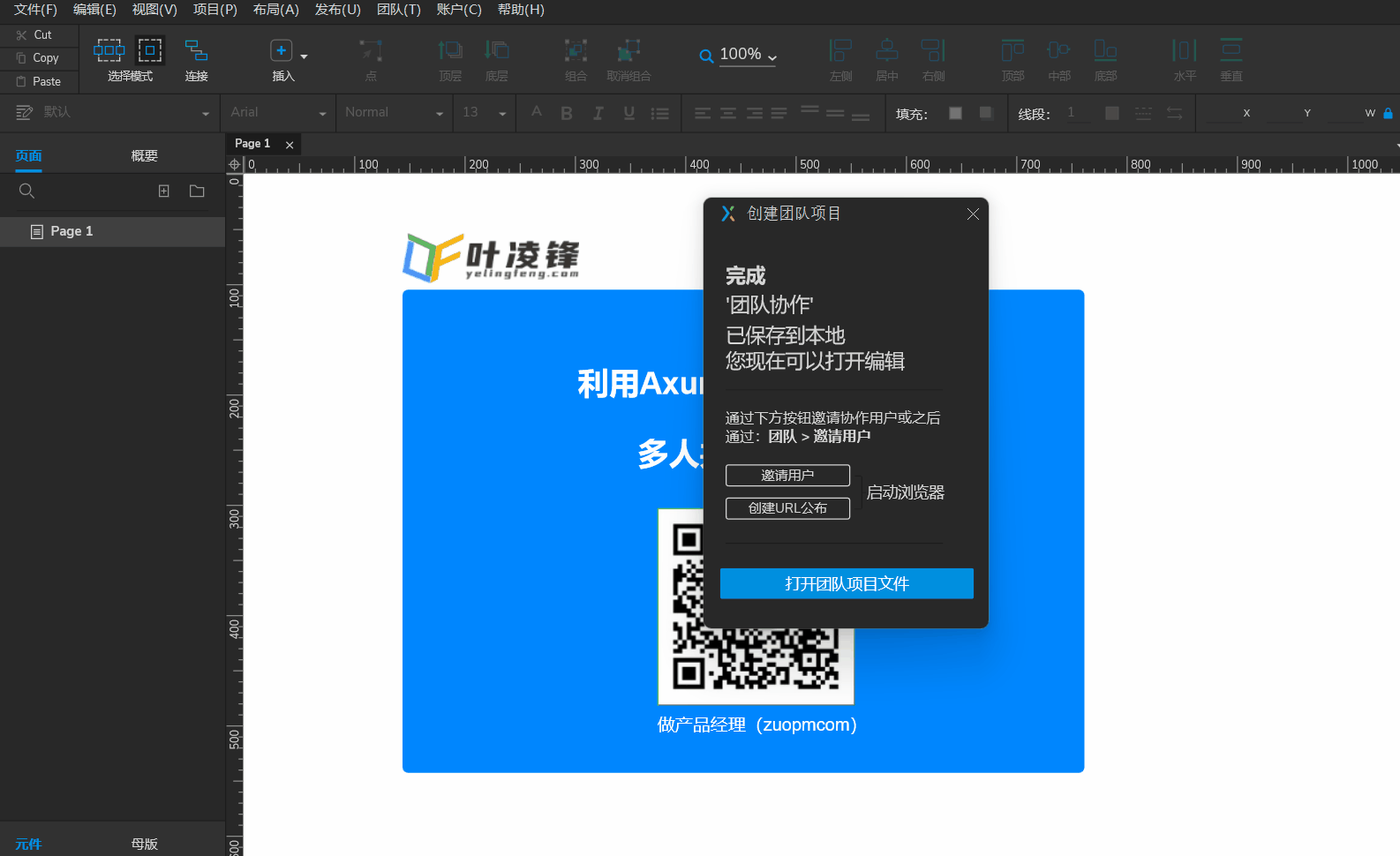 新建一个Axure文件,在“文件-创建团队项目”或者“团队-从当前文件创建团队项目”。创建好团队项目之后,就可以邀请团队的伙伴一起参与产品原型项目了。点击创建成功时的“邀请用户”,在浏览器打开的Axure云页面中填写对方的Axure账号邮箱即可。受邀的伙伴将会收到来自Axure的一封电子邮件,点击邮件中的链接,接受邀请即可参与到项目中。