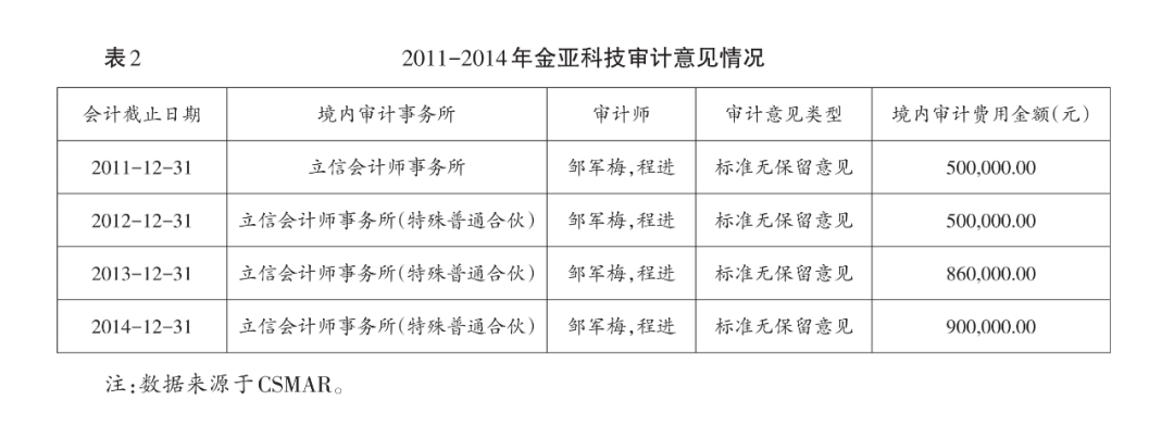 截至2014年,立信已经为金亚科技提供了9年的审计服务。亲密的客户关系既可以提高审计效率,同时也是滋生审计失败的土壤。