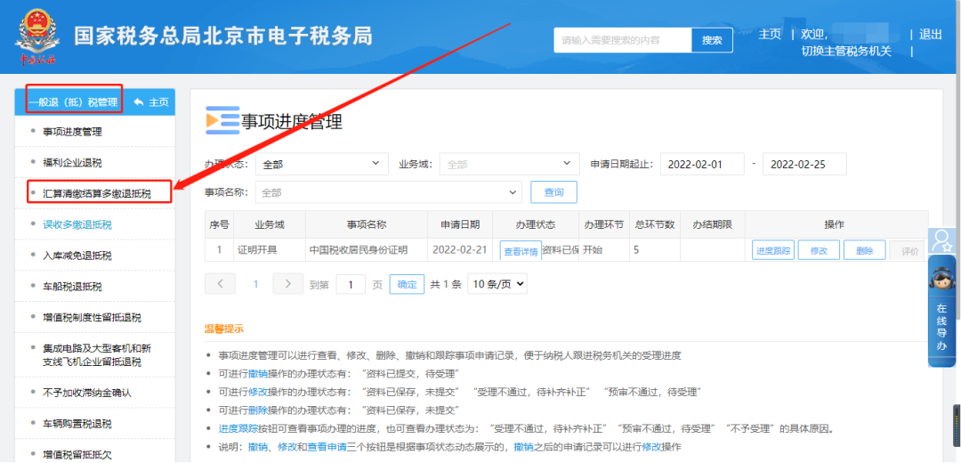 四、一般退(抵)税管理—汇算清缴结算多缴退抵税。