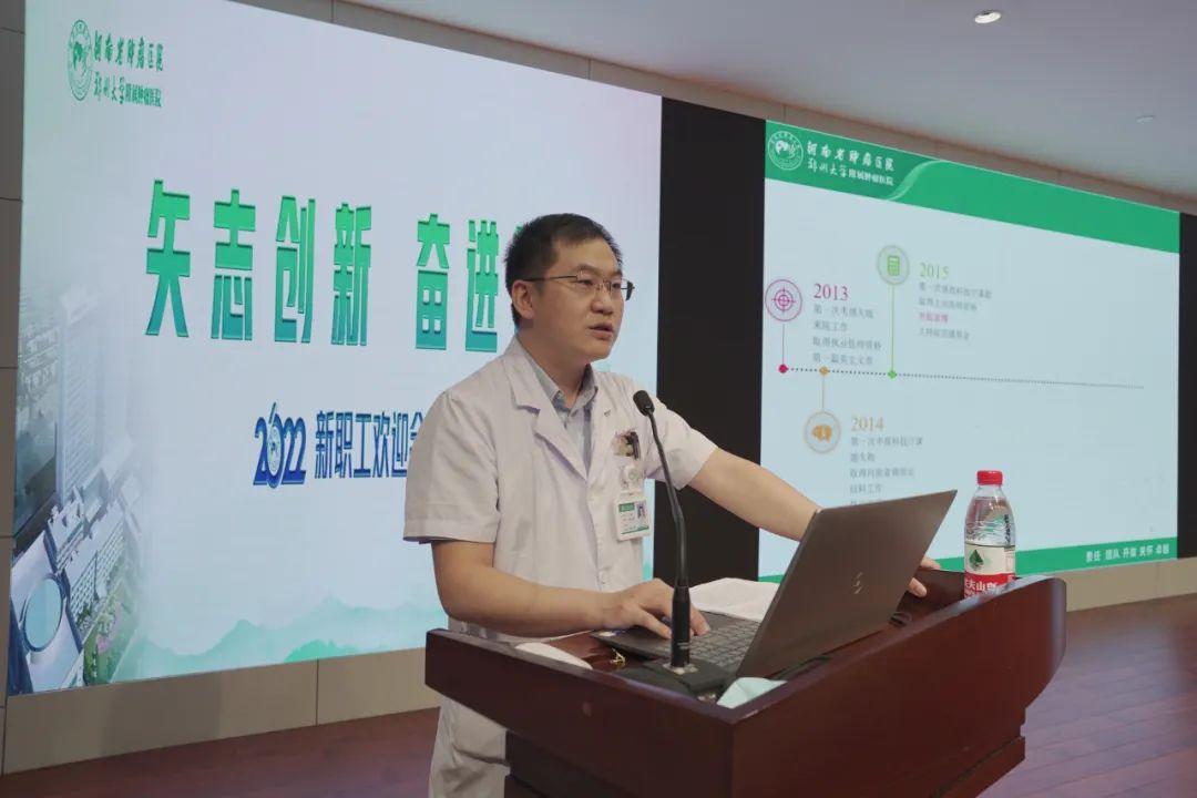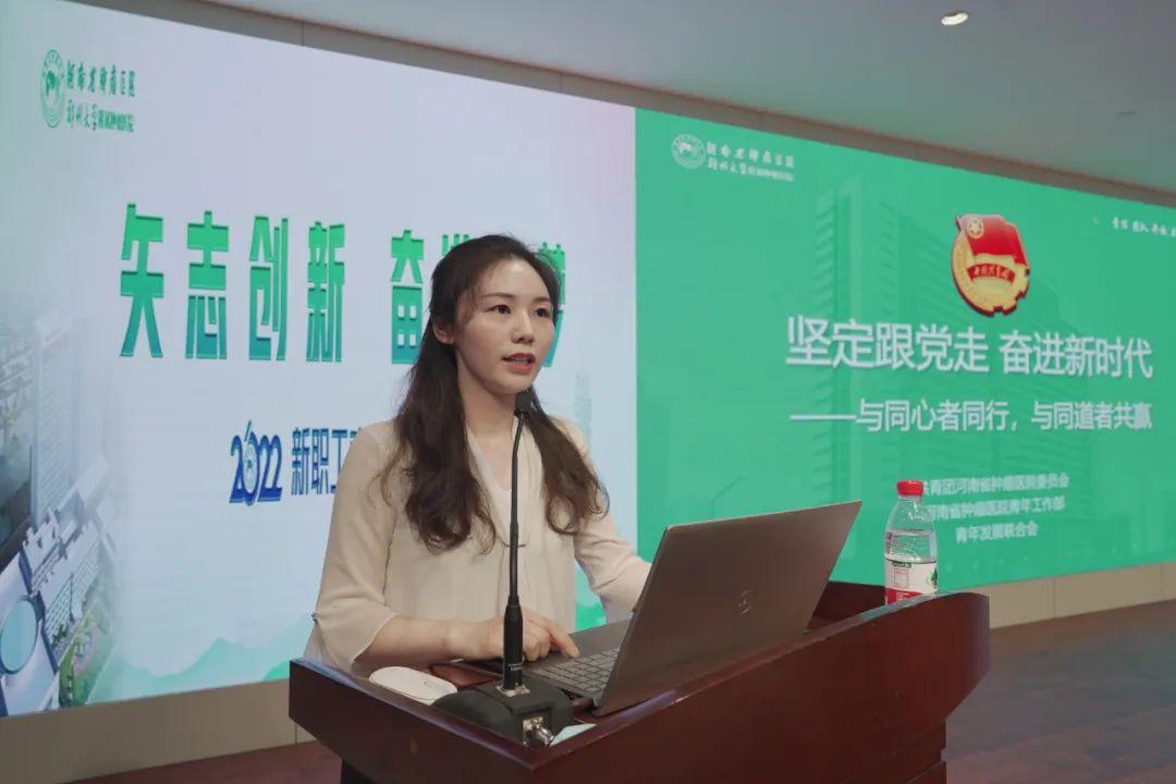 团委书记彭琪以《坚定跟党走,奋进新时代——与同心者同行,与同道者共赢》为题,从青年的定义讲到人生的境界,让新职工们了解共青团、医院青年发展联合会和青年志愿者工作。