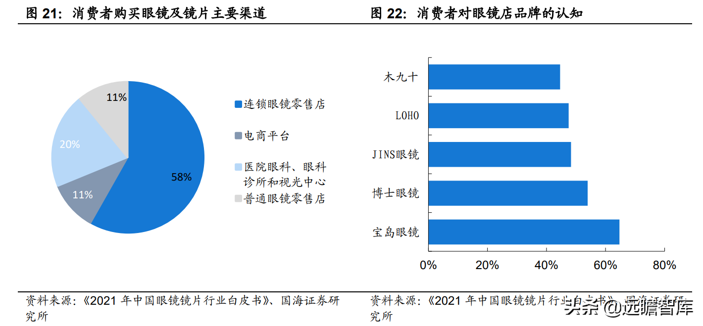 消费者对验配服务专业性愈发重视,配镜渠道逐渐转向眼科医院、诊所及配镜中心。目前,虽然消费者的主要购镜渠道仍然是眼镜零售店,但是越来越多消费者对于在医院眼科、眼科诊所或视光中心配镜的选择已大于普通眼镜零售店,反映出消费者对于验配服务专业性重视程度逐渐提高。