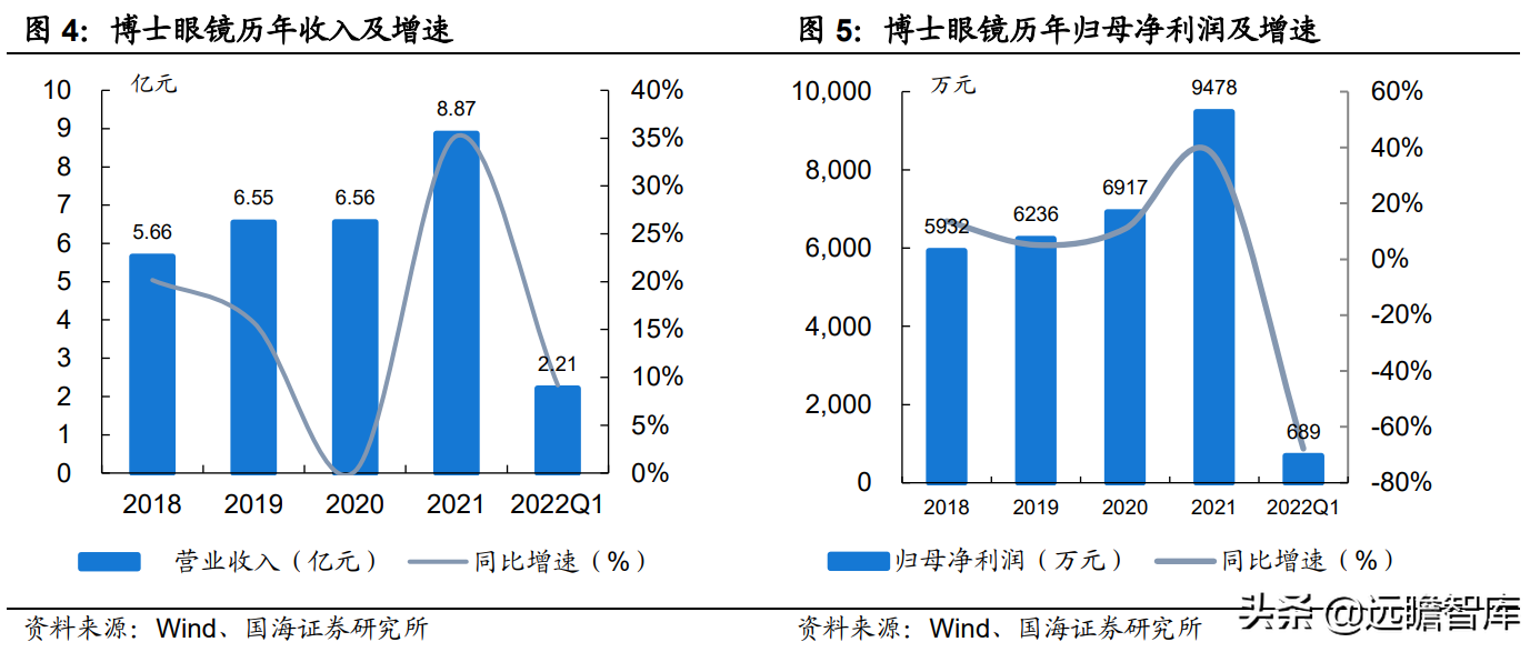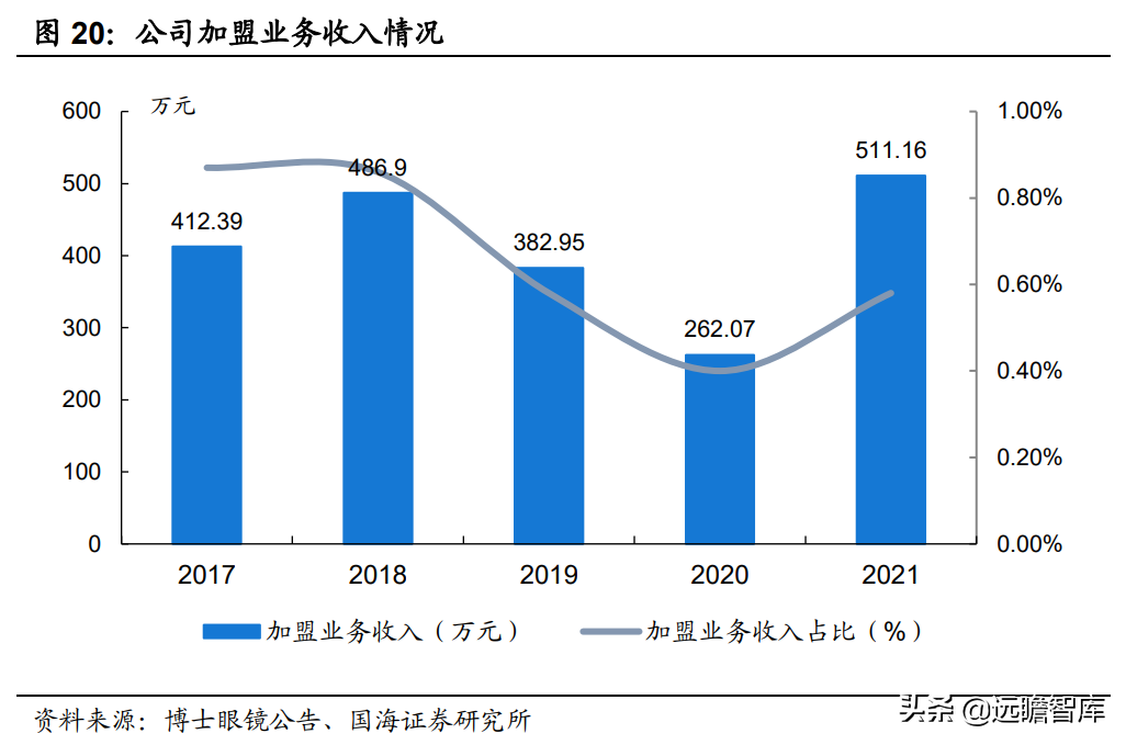 公司与医院合作建设视光中心,有望打造新的业绩增长点。公司不断提高视光专业服务水平,依托供应链管理优势,加强与医院的视光项目合作,强化资源整合、优势互补,截至 2021 年底公司已建成 8 家视光中心。