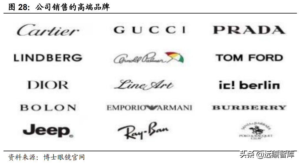 就镜架和镜片产品而言,公司代理了超过 60 个国际品牌,并拥有数个 OEM 自有品牌;就隐形眼镜品类来看,公司代理品牌数量超 10 个。在 OEM 产品毛利率占优情况下,公司注重打造自有品牌,目前有 8 个自有品牌用于镜架,2 个自有品牌用于镜片。