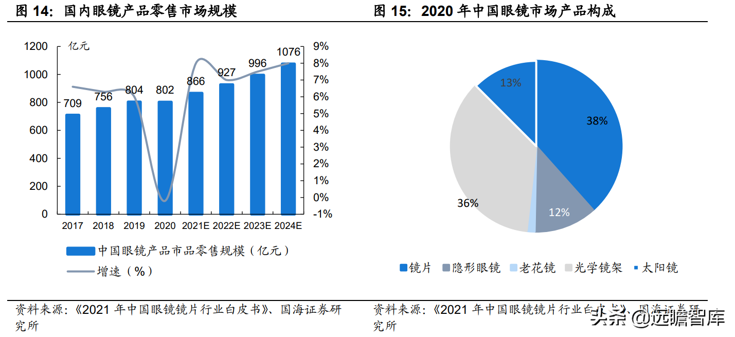 国内眼镜市场增长稳定,2024 年有望突破 1000 亿元。