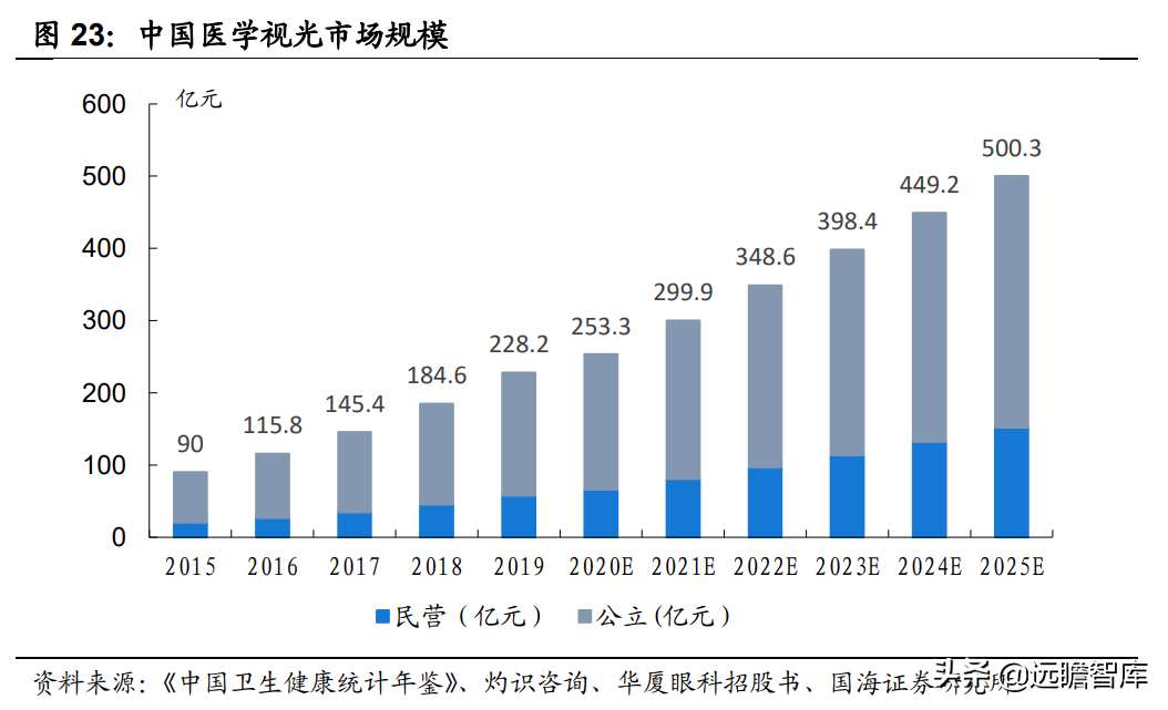 国内视光市场发展迅速,由 2015 年的 90 亿元增长至 2019 年 228.2 亿元,据华夏眼科招股书,2025 年国内视光市场规模有望达到 500.3 亿元。在视光市场中,角膜塑形镜(OK 镜)作为一种新型的非手术可逆视力矫正方式能够有效缓解近视发展,广受青少年视光矫正市场的青睐。