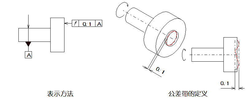 全跳动是指零件绕基准轴线作连续旋转时,沿整个被测表面上的跳动量。全跳动公差是被测实际要素绕基准轴线连续的旋转,同时指示器沿其理想轮廓相对移动时所允许的最大跳动量。