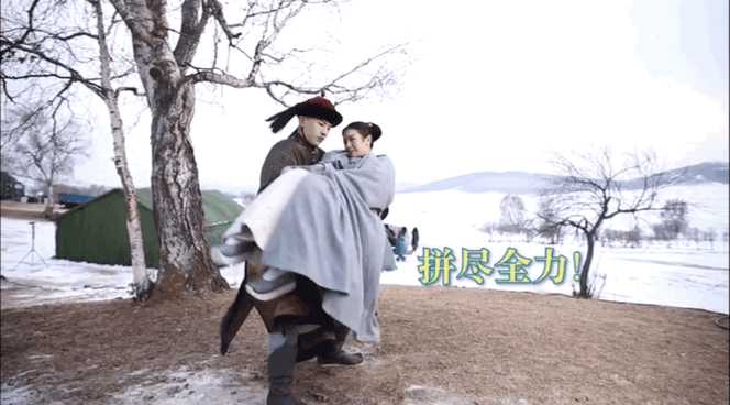 亲自亲为的公主抱有点困难,最后林更新也是在道具的辅助下才勉强拍完这段浪漫的感情戏。