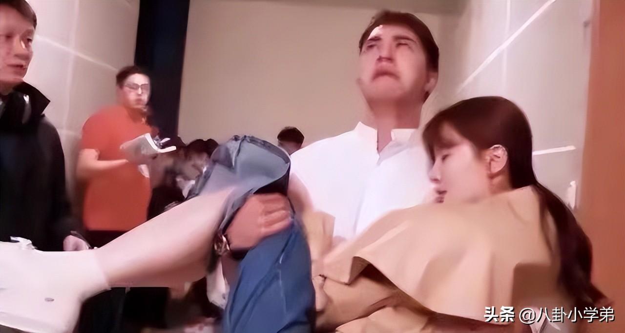 或许是觉得自己没面子,许魏洲当着工作人员的面抱怨乔欣的头太大,听到这句话的乔欣似乎也不太高兴,坐在地上闷闷不乐。