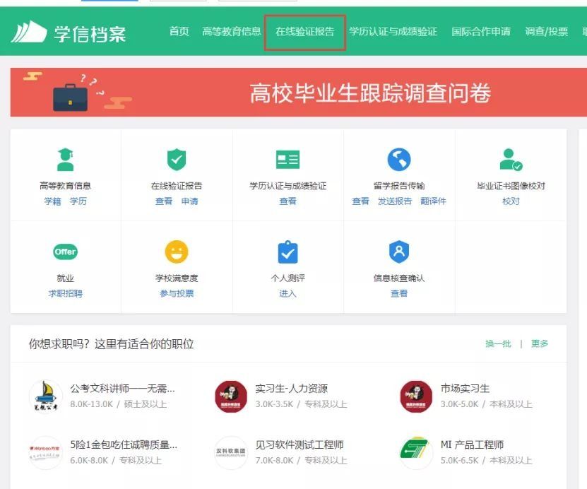 第二步,成功登录后,点击顶部菜单中的“在线验证报告”栏目。