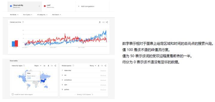 上图左下角为可观测性的全球搜索趋势,其中中国的搜索热度颇高。