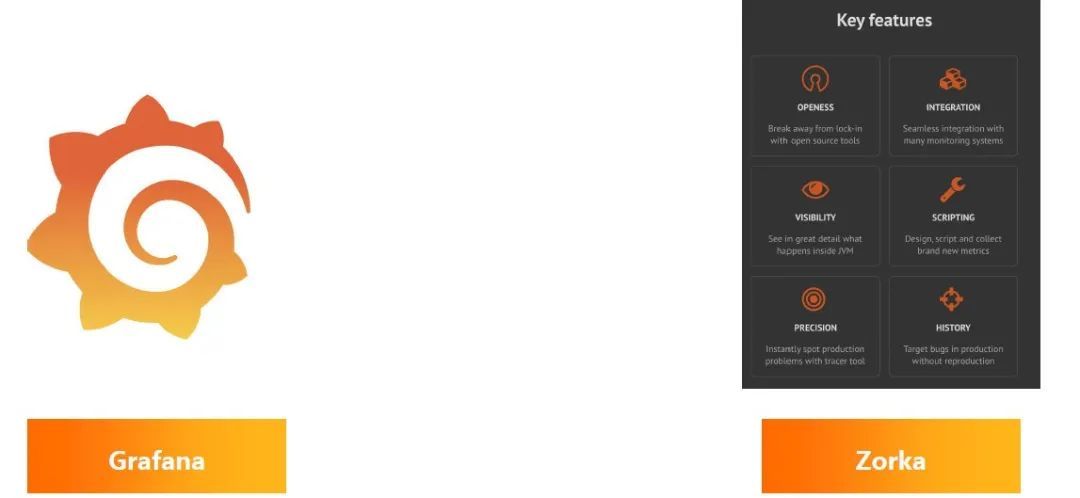 除了日志外,我们也期望收集到 Java 应用指标,因此又引入了 Zorka 开源组件。Zorka 和 Zabbix 可以简单地进行结合,可以通过 Zorka 将收集到的信息上报给 Zabbix 进行展示。而 Zabbix 又可以通过 Grafana Zabbix 插件直接输出数据,最终将整个应用大屏和看板信息都收集到 Grafana 界面。