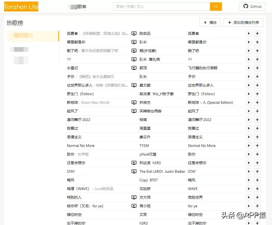 【Tonzhon Lite】,在线听歌神器,聚合互联网主流的音乐平台,可直接跳转对应的音乐平台听歌,这样有些平台因为无版权无法播放的歌曲不用不停切换到其它平台听。