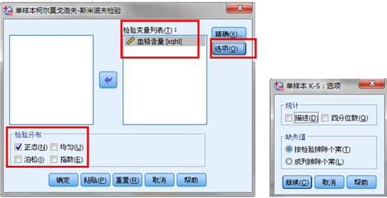 二是计算法,可用 K-S 检验和 S-W检验。可使用“分析—描述统计—探索性分析”和“分析—非参数检验—旧对话框—单样本K-S检验”。
