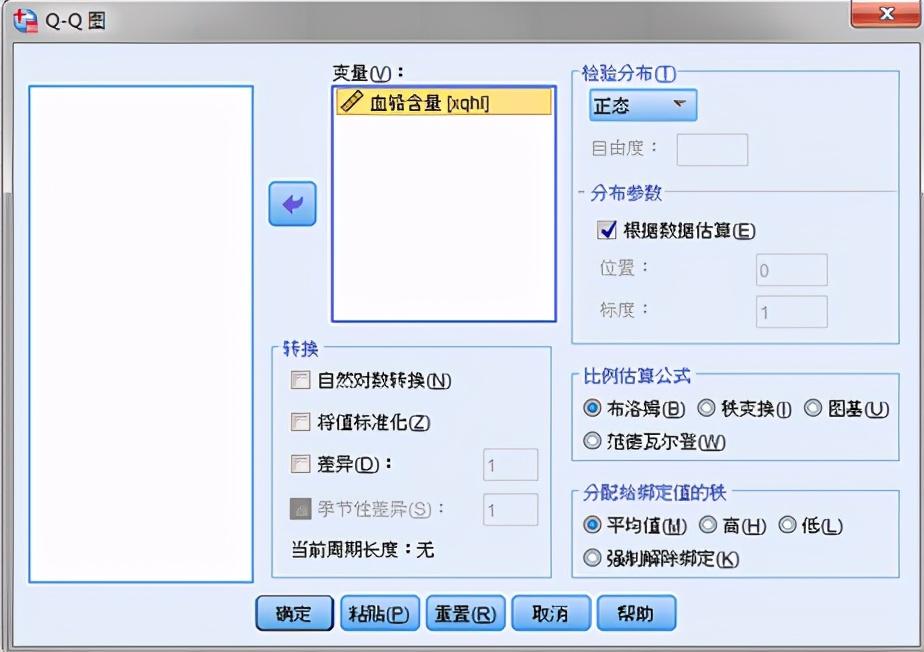 Q-Q图的对话框界面、操作方式和P-P图基本类似。