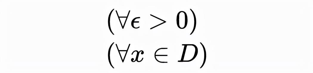 第一个表达式意味着你可以选择任何你想要的正数。第二个表达式意味着你可以在f(x)的定义域中选择任何元素。