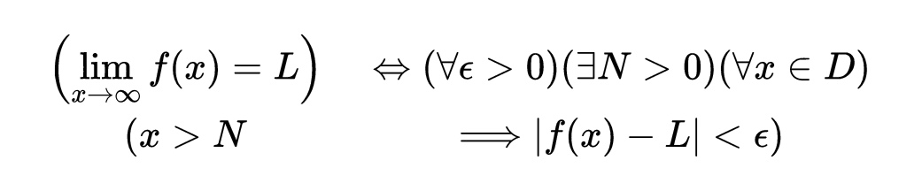如果我们要将这个定义形式化,有很多情况,但现在只关注两种情况(稍后会推广它们):有限极限和无限极限。对于有限的双边极限,有:
