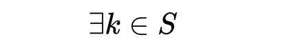 上面表达式的意思是,S的每个元素(表示为k)都将满足后面的条件。你可以把它看作是对那些不相信你接下来要说的话的人的一种挑战。"你不相信我?挑选S中的任何元素,称其为k,k将满足这个右边的一切条件。"