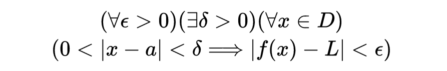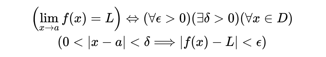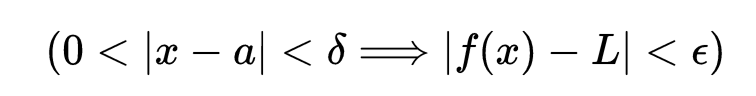 表示如果x在a的距离内(但不等于a),那么f(x)在L的距离ϵ内。