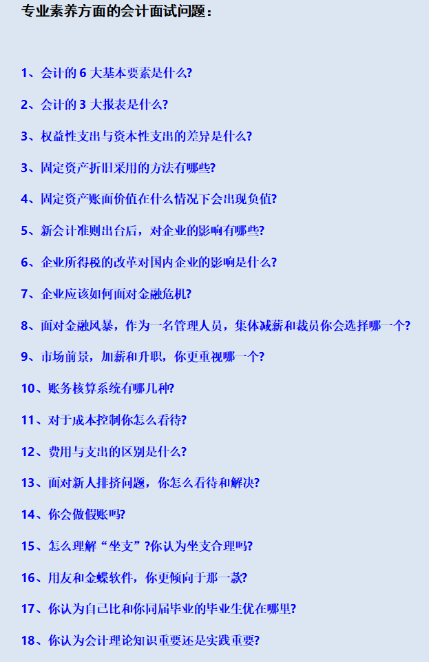 版权声明:我们致力于保护作者版权,注重分享,被刊用文章【面试会计的问题(资深HR建议)】因无法核实真实出处,未能及时与作者取得联系,或有版权异议的,请联系管理员,我们会立即处理! 部分文章是来自自研大数据AI进行生成,内容摘自(百度百科,百度知道,头条百科,中国民法典,刑法,牛津词典,新华词典,汉语词典,国家院校,科普平台)等数据,内容仅供学习参考,不准确地方联系删除处理!;