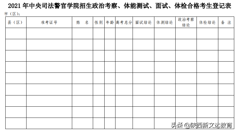 附件:1.2021年中央司法警官学院招生政治考察、体能测试、面试、体检合格考生登记表