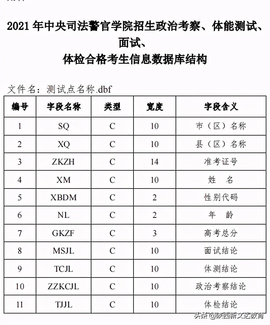 2.2021年中央司法警官学院招生政治考察、体能测试、面试、体检合格考生信息数据库结构
