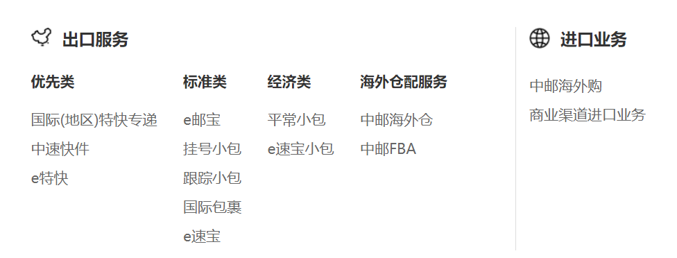 中国邮政国际业务为用户提供通达全球200多个国家和地区的寄递服务,提供国际特快专递、e邮宝、平常小包等产品服务。中国邮政与全球各国邮政部门及海关部门签署了合作协定,国际EMS快递享有优先报关、优先输入、优先通关权。