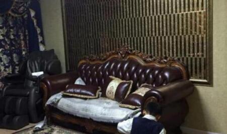 客厅的沙发是实木红皮,听起来很是高端大气上档次,但看起来却没那么美观大气了,尤其配上黄色栅栏隔断,厚重的有些过分了。