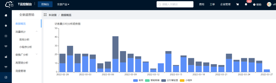 他们通过T云充分发挥了全网、全渠道资源的价值,在客户活跃的渠道上曝光企业品牌及业务信息,在客户主动查找时,能找到企业联系;在企业主动获客的方式上,充分通过T云上的工具及大数据赋能销售,快速获取线索跟进。