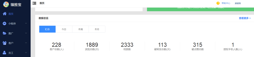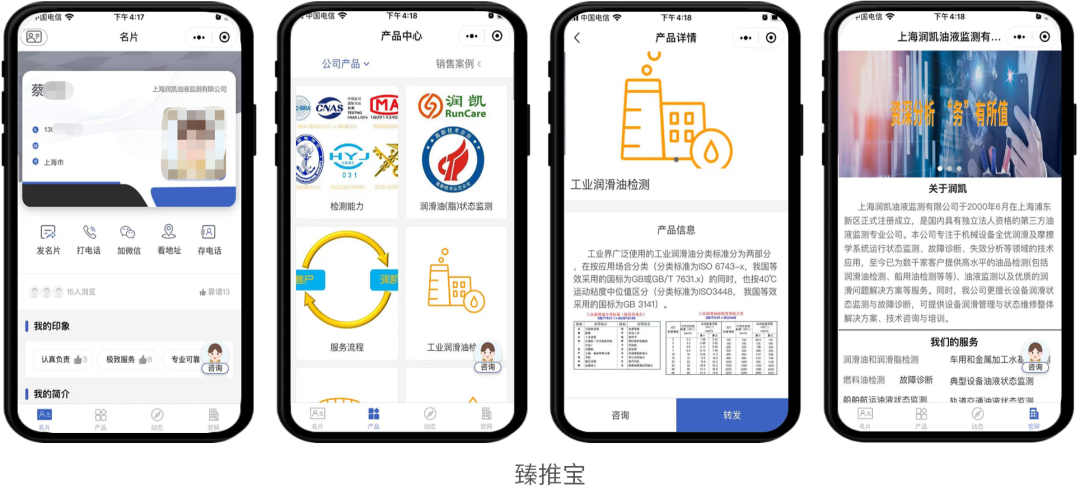 T云臻推宝智能名片小程序,赋能销售。不管是出门拜访客户,还是参加展会,不仅可以减少物料的成本,还可以分析用户的行为轨迹,了解用户精准需求,向用户提供精准解决方案,提高获客转化。截止到目前,使用臻推宝已近3年,获得2333个线索。