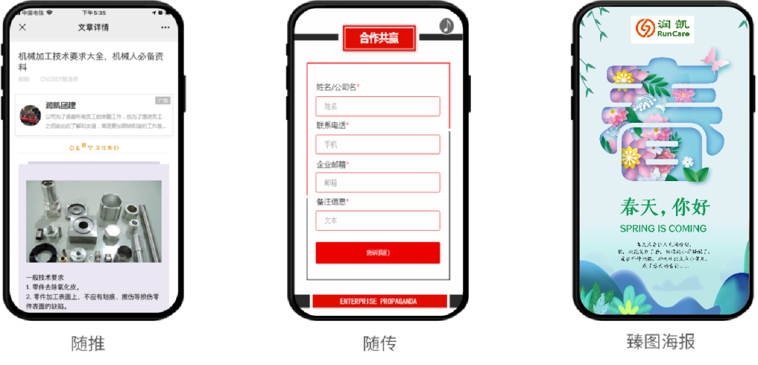 T云随传可以满足企业在多种场景下的宣传,以强互动性的H5页面,吸引用户留资,使企业获得线索。