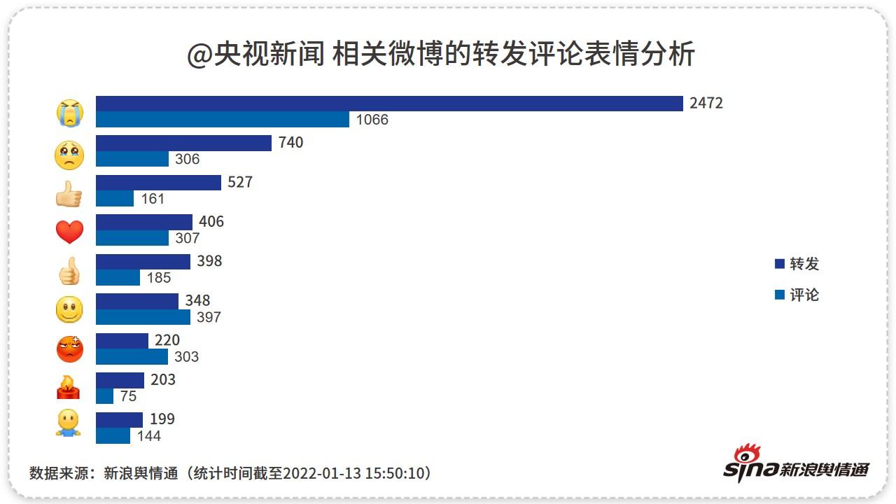 截至1月13日,该事件在网络上引发23.67万条相关信息,“泪目”表情被使用频次高。