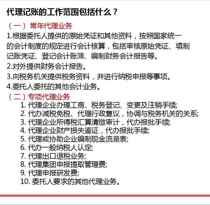 代理记账的工作范围包括什么?