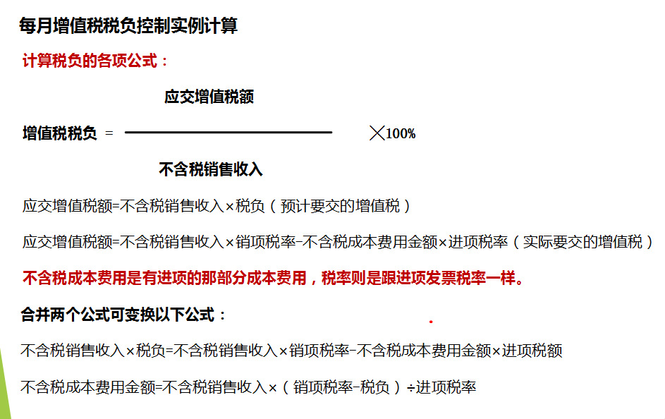 每月增值税税负控制实例计算:
