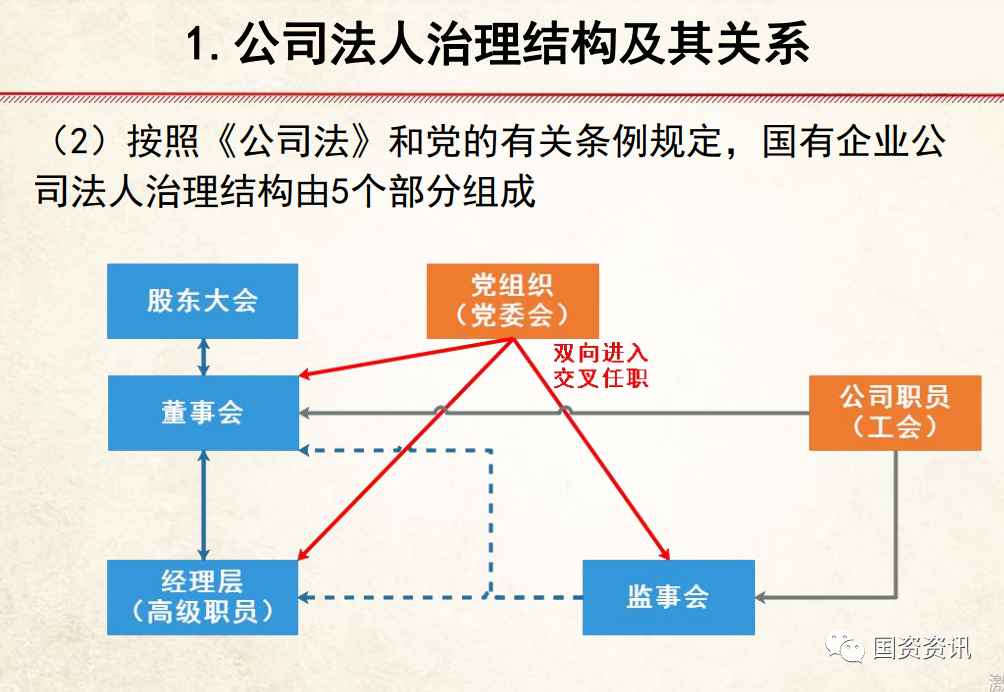 ②在国有企业中,为发挥党组织在企业的政治核心和保证监督作用,党委书记应通过法定程序进入董事会,可兼任董事长职务。党委其他成员也可进入总经理层或监事会。特别是纪检书记可进入监事会,并兼任监事会***。