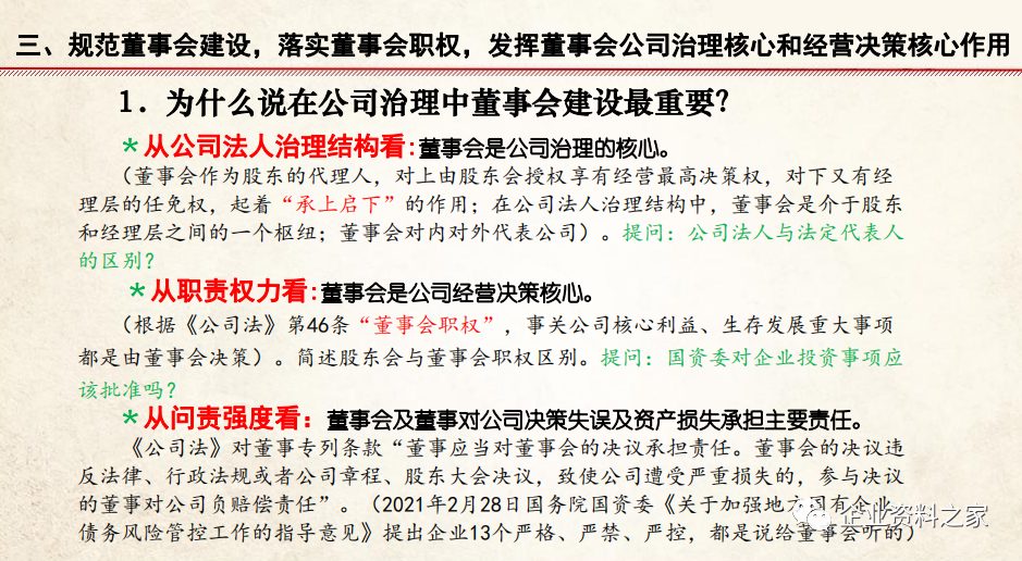 (四)强化公司董事会制度的核心作用