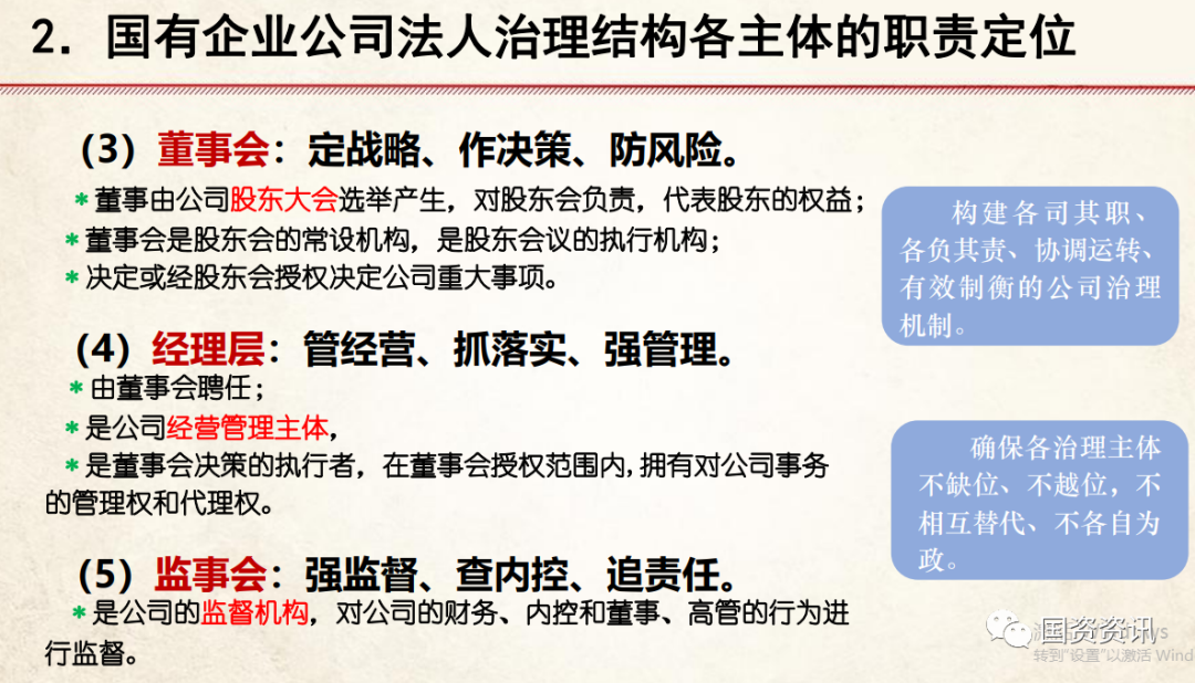 2.董事会成员与经理层常常是一套班子两块牌子。因国企董事长还兼任国企国资代表,所有权与经营权合二为一,很容易重复改制前的管理模式,董事会取代了经理层,而不是监管经理层,董事会代表股东权益的作用失效。