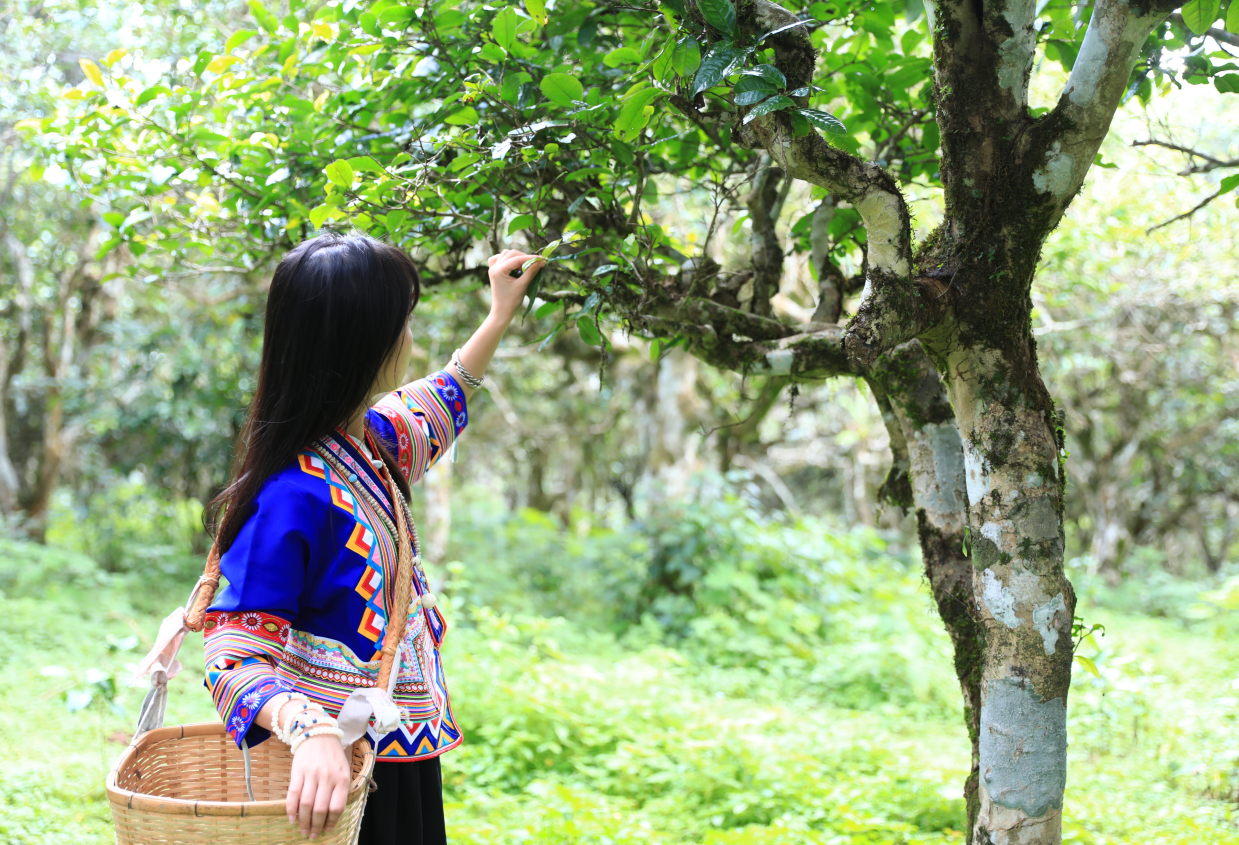 云南普洱茶树大多生于荒野,长于深山,采茶需得跋山涉水,需得征服高达几米甚至十几米的古茶树,需得心静、手灵,在繁盛、苍劲枝头间手指翻飞,不厌其烦地采下一片又一片鲜嫩芳香的芽叶。
