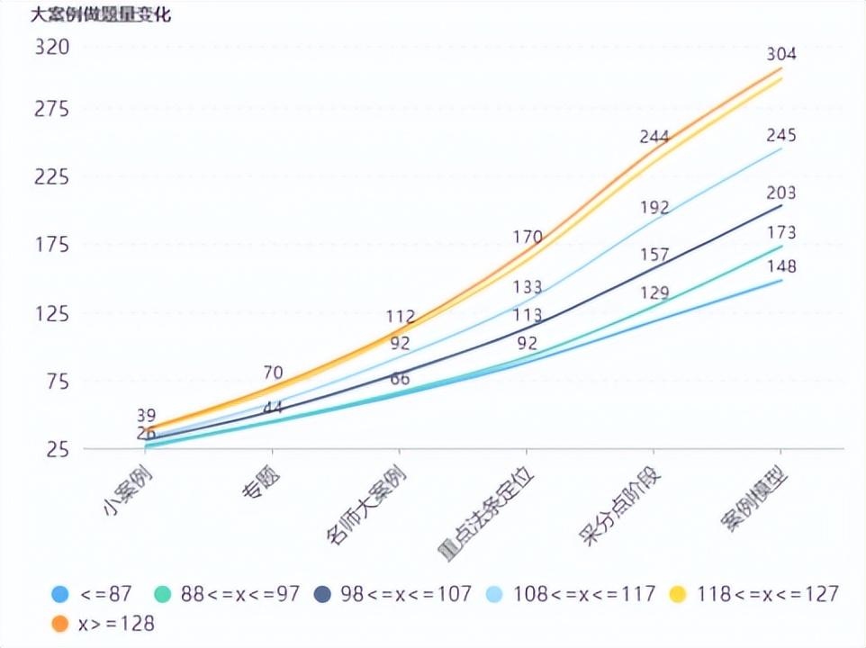 不管什么分数段,每天能做的大案例差不多,所以一个考生每天能够练习的大案例是有限的(练大案例很累,能写3个多已经是考生极限)。