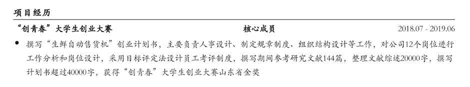 比如上面优秀简历案例中提到的这条创业大赛经历: