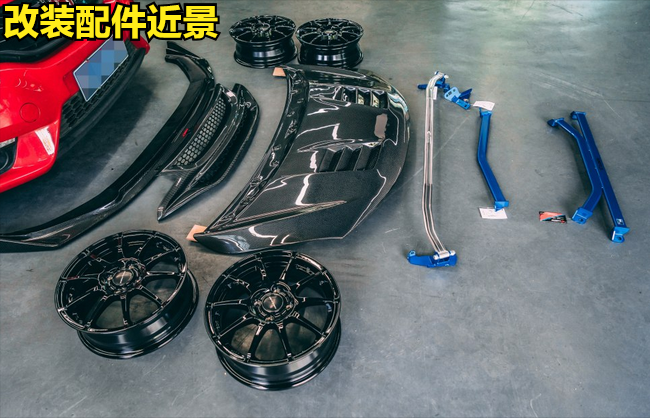 改装清单:1.CMST碳纤引擎盖;2.CMST碳纤前唇;3.CMST碳纤中网;4.CUSCO 井字加强件;5.CUSCO 前底加强件;6.雅泛迪15英寸低压铸造黑色轮毂