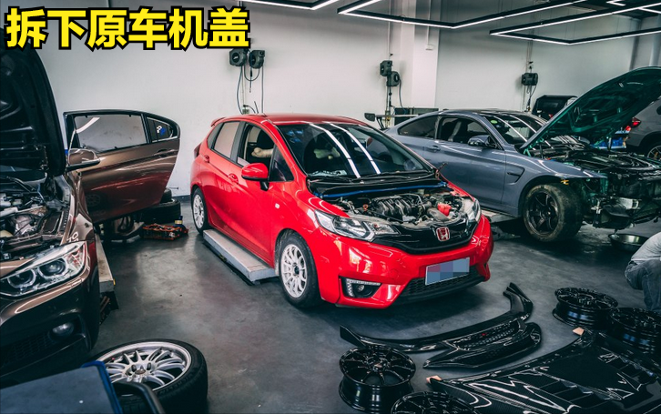 改装正式开始,先拆发动机盖,换碳纤维机舱盖。