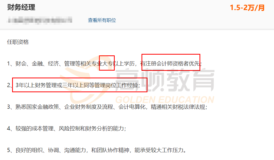 一般招聘财务经理及以上岗位,工作经验和证书才是重要砝码!