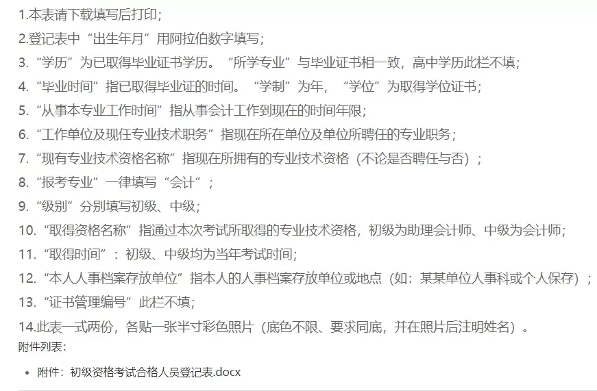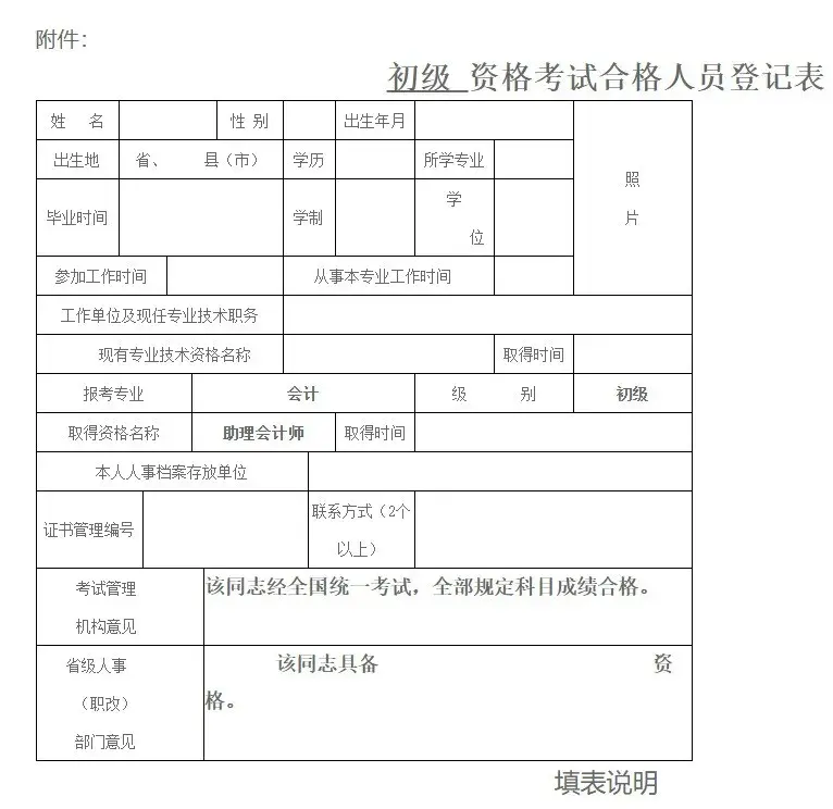 (5)考试合格登记表:用钢笔或签字笔填写《资格考试合格人员登记表》一式二份(具体表样下载在当地证书通知上会注明,张数也会有差异)。