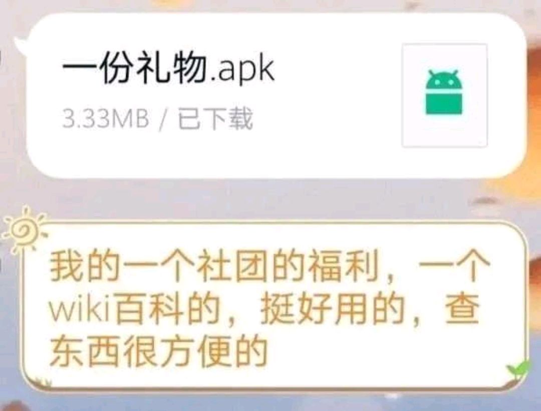 然而,最让人“抓狂”的是,这位好事者还给该APK起名为“一份礼物”。
