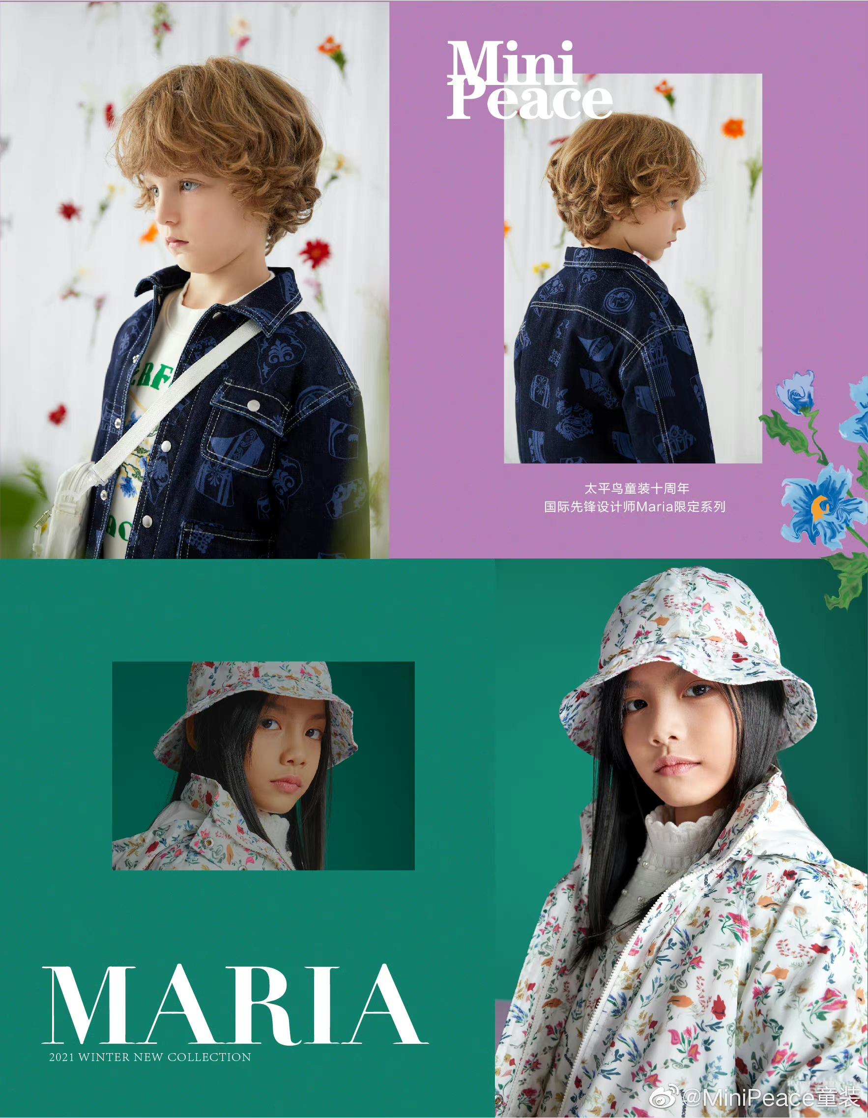 2021年,Mini Peace 太平鸟童装成为公司旗下增长最快速的品牌,收入同比增长29.5%至12.7亿元。为致敬品牌十周年,太平鸟童装携手国际先锋设计师Maria打造全新限量高定系列,用“花卉”元素,传递儿童的纯真与美好。