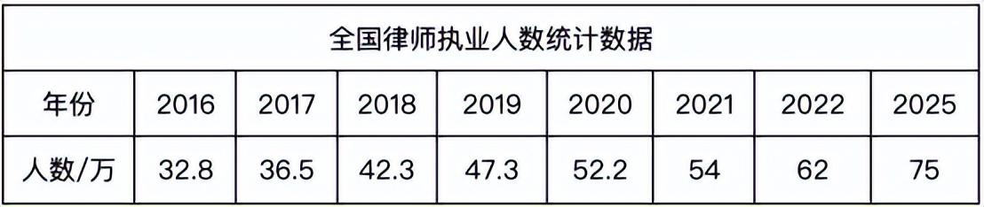 年初司法部公布了《全国公共法律服务体系建设规划(2021-2025年)》,表明,到2025年,全国执业律师达到75万名。